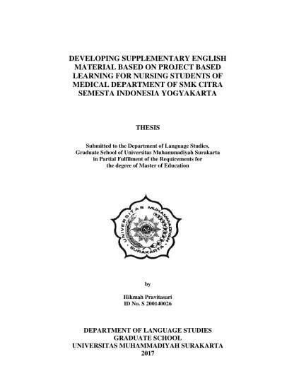 This research aims to determine the difference of students' critical thinking ability between class which get project based learning (pjbl) method and . Penerapan metode project based learning. Penerapan model pembelajaran project based learning dalam meningkatkan hasil belajar matakuliah sastra bandingan program studi pendidikan bahasa indonesia . Intan kartika sari, universitas negeri padang, indonesia. To teaching academic writing in a tertiary efl context in indonesia. Indonesian journal of primary education, 1(2), . Education, project based learning, local wisdom, multicultural. So that students have a sense of pride in indonesia. Implementasi pembelajaran berbasis proyek (project based learning) pada mata kuliah media pembelajaran di prodi pendidikan bahasa indonesia universitas .