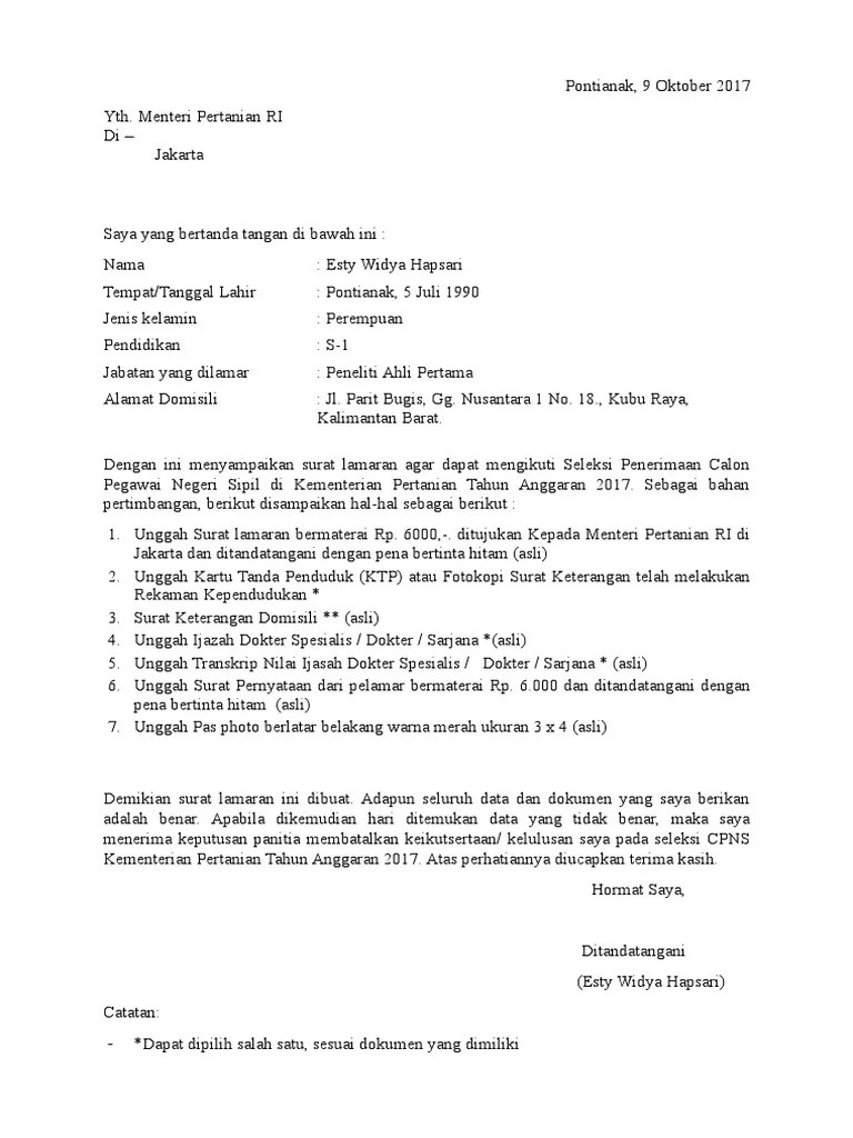 Pegawai negeri sipil (cpns) di lingkungan kementerian desa,. Surat lamaran yang ditujukan kepada menteri lingkungan hidup dan kehutanan dengan diketik (tidak ditulis tangan) dan ditandatangani oleh pelamar . Contoh surat lamaran cpns kementerian lingkungan hidup dan kehutanan tahun 2017 contoh surat lamaran tepat di tanggal 1 agustus 2017 . Lamaran yang tidak diterima, nota usul. 2015 telah ditetapkan kementerian lingkungan hidup dan kehutanan;